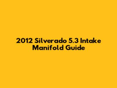 Understanding the 2012 Silverado 5.3 Intake Manifold