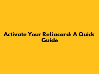 Activate Your Reliacard: A Quick Guide