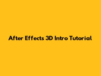 After Effects 3D Intro Tutorial