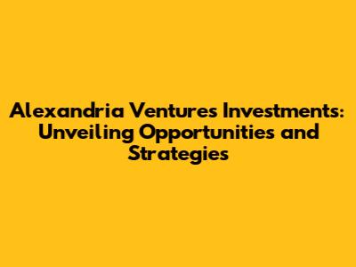 Hey guys! Let's dive deep into the world of Alexandria Ventures Investments. Ever wondered what makes them tick, what kind of opportunities they explore, and how they strategize their investment moves? Well, buckle up because we're about to dissect everything you need to know about this intriguing player in the investment arena.