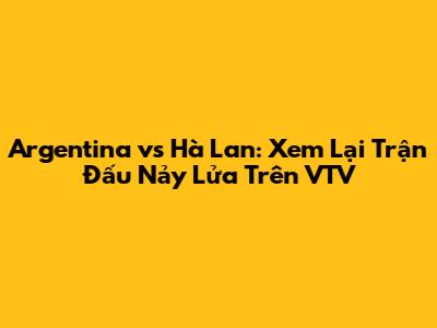 Argentina Vs Hà Lan: Xem Lại Trận Đấu Nảy Lửa Trên VTV