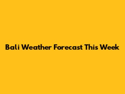 Bali Weather Forecast: Your Weekly Update