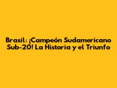 Brasil: ¡Campeón Sudamericano Sub-20! La Historia Y El Triunfo