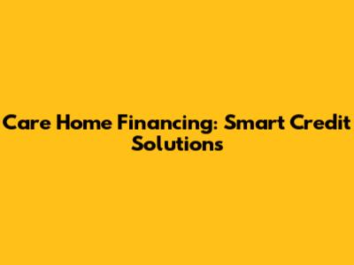 Care Home Financing: Smart Credit Solutions