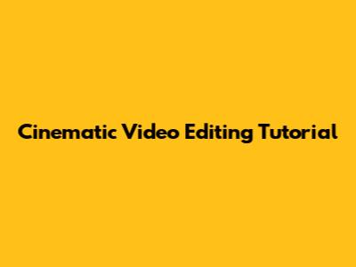 Cinematic Video Editing Tutorial
