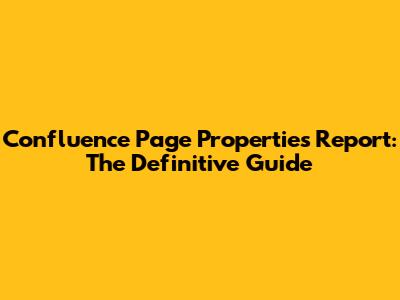 Confluence Page Properties Report: The Definitive Guide