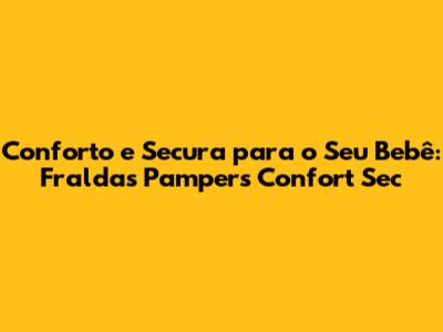 Se você busca o melhor para o seu bebê, as fraldas Pampers Confort Sec são uma excelente opção. Experimente e comprove a diferença!