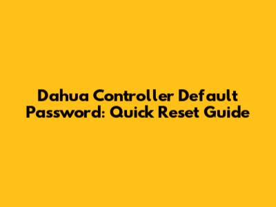Dahua Controller Default Password: Quick Reset Guide