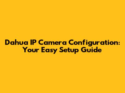 Dahua IP Camera Setup: Your Easy Configuration Guide