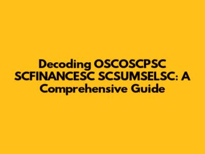 Decoding OSCOSCPSC SCFINANCESC SCSUMSELSC: A Comprehensive Guide
