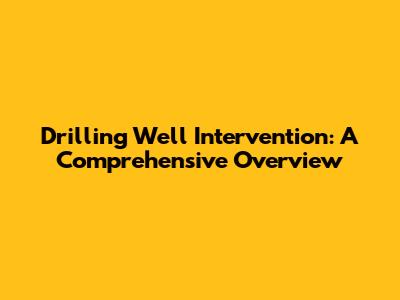 Deep Dive: Understanding Drilling Well Intervention