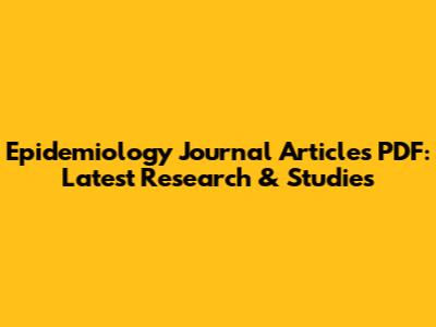 Epidemiology Articles PDF: Latest Research & Studies
