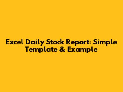 Excel Daily Stock Report: Simple Template & Example
