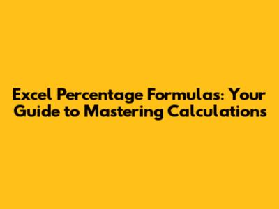 Excel Percentage Formulas: Your Guide To Mastering Calculations