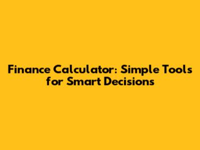 Finance Calculator: Simple Tools For Smart Decisions
