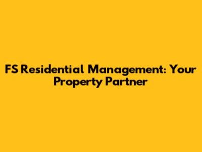 FS Residential Management: Your Property Partner