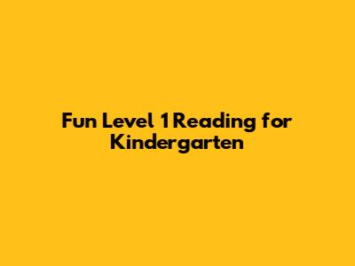 Fun Level 1 Reading For Kindergarten