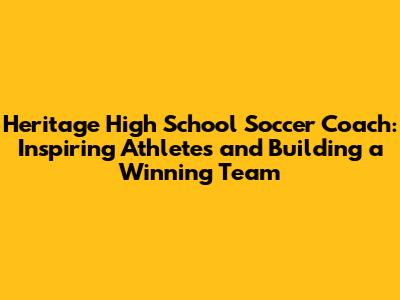 Heritage High Soccer: Meet The School's Inspiring Coach