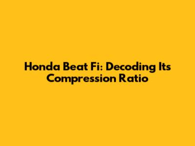 Honda Beat Fi: Decoding Its Compression Ratio