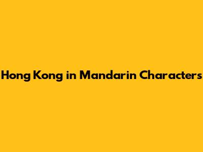 Hong Kong: How To Write It In Mandarin