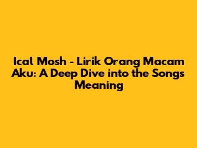 Hey guys! Ever wondered about the real story behind Ical Mosh's hit, 'Orang Macam Aku'? Well, you're in the right place! We're going to break down the lyrics, explore the themes, and understand why this song resonates with so many people. Get ready for a lyrical journey!