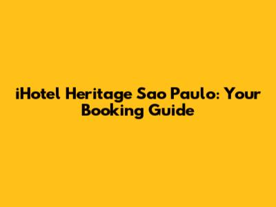 IHotel Heritage Sao Paulo: Your Booking Guide