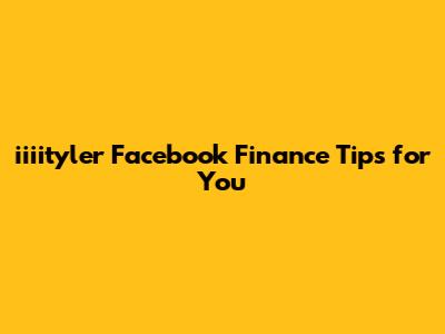 Iiiityler Facebook Finance Tips For You