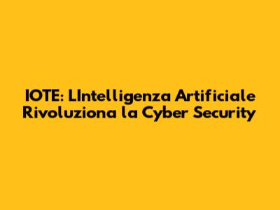 IOTE: L'Intelligenza Artificiale Rivoluziona La Cyber Security