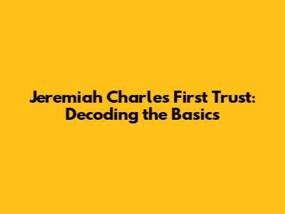 Jeremiah Charles First Trust: Decoding The Basics