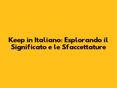 Keep In Italiano: Significato, Uso E Traduzioni Essenziali