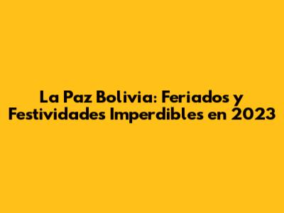 En resumen, La Paz, Bolivia, en 2023, ofrece un calendario lleno de feriados y festividades que prometen experiencias inolvidables. Desde las celebraciones nacionales hasta los eventos culturales y religiosos, hay algo para todos los gustos. Planificar sus viajes alrededor de estos dÃas festivos les permitirá sumergirse en la cultura vibrante, la historia fascinante y la calidez de su gente. Sigan los consejos de planificación y prepárense para una aventura inolvidable. Recuerden reservar con anticipación, informarse sobre los eventos y, sobre todo, disfrutar al máximo de cada momento. ¡La Paz los espera con los brazos abiertos! ¡AnÃmense a explorar y descubrir todo lo que esta increÃble ciudad tiene para ofrecer! ¡Nos vemos en La Paz!