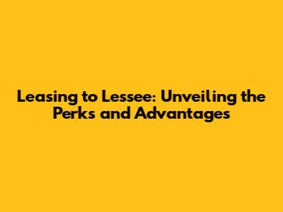 Leasing To Lessee: Perks, Benefits, And Advantages