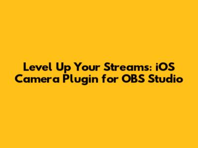 Level Up Your Streams: IOS Camera Plugin For OBS Studio