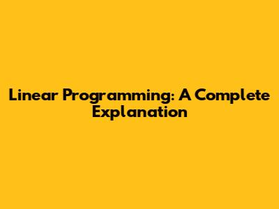 Linear Programming: A Complete Explanation