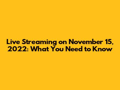 Live Streaming On November 15, 2022: What You Need To Know