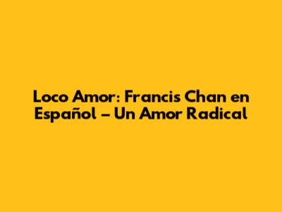 Hey guys! Today we're diving deep into Francis Chan's Loco Amor, but specifically, we’re looking at the Spanish version. For all my Spanish-speaking friends, or those who prefer reading in Español, this one’s for you. Loco Amor (Crazy Love) isn't just another Christian book; it’s a wake-up call, a challenge to examine the authenticity of our faith, and a passionate plea to live a life that truly reflects the radical love of Jesus. Francis Chan, with his straightforward and no-nonsense style, shakes us out of complacency and invites us into a relationship with God that is anything but lukewarm. He doesn’t just tell us what to do; he shares his own struggles, doubts, and journey toward understanding what it means to live a crazy, radical, and authentic love for God. This book is essential because it’s not just about feeling good or ticking off religious boxes. It’s about genuine transformation. It's about understanding that God's love isn't tame or predictable; it’s wild, passionate, and all-consuming. Loco Amor challenges us to ask ourselves the hard questions: Are we really living out our faith? Are we truly impacting the world around us? Or are we just going through the motions? The Spanish translation allows even more people to access this powerful message, breaking down language barriers and inviting a wider audience to grapple with these vital questions. Whether you’re a long-time Christian or just beginning to explore your faith, Loco Amor in Spanish offers a fresh perspective and a powerful call to action. So, grab your copy and prepare to be challenged, inspired, and maybe even a little uncomfortable. Because that’s where real growth begins. Get ready to discover what it truly means to live a life fueled by loco amor – a crazy love for God.