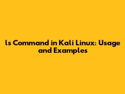 `ls` Command In Kali Linux: Usage And Examples