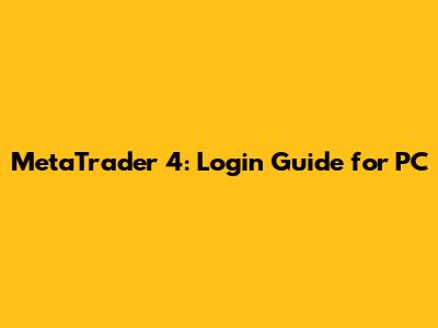 MetaTrader 4: Login Guide For PC