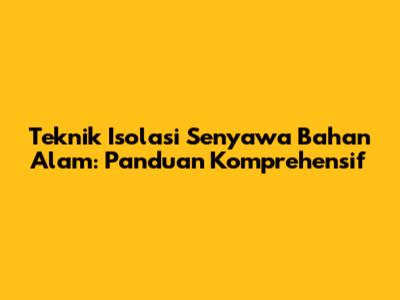 Hey guys! Pernah denger tentang senyawa bahan alam? Nah, senyawa-senyawa ini tuh asalnya dari alam, bisa dari tumbuhan, hewan, atau mikroorganisme. Mereka punya potensi besar dalam berbagai bidang, mulai dari pengobatan sampai industri makanan dan kosmetik. Tapi, buat dapetin senyawa-senyawa ini nggak bisa langsung comot gitu aja. Kita perlu teknik isolasi yang tepat biar dapet senyawa yang kita mau dalam keadaan murni. Yuk, kita bahas tuntas tentang teknik isolasi senyawa bahan alam!