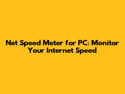 Net Speed Meter For PC: Monitor Your Internet Speed