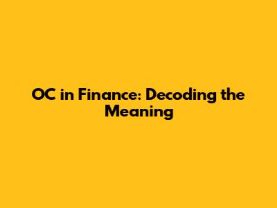 OC In Finance: Decoding The Meaning