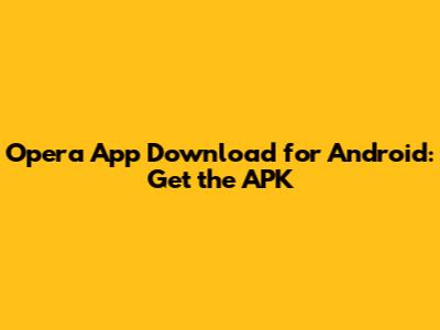 Opera App Download For Android: Get The APK