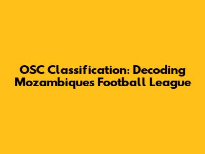 Hey sports fanatics! Ever found yourselves scratching your heads trying to figure out the ins and outs of Mozambican football? Well, you're not alone! The OSC Classification system, which deals with the organization and ranking of teams in the Liga Moçambicana (Mozambique League), can seem a bit complex at first glance. But don't worry, we're going to break it all down for you. This guide will provide you with all the details you need to navigate the world of Mozambican football. We'll explore what OSC classification is, how it works, and why it's super important for understanding the league's dynamics and the teams' standing. So, buckle up, grab your favorite snacks, and let's dive into the exciting world of Mozambican football, uncovering the secrets of OSC Classification together.