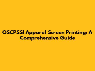 OSCPSSI Apparel Screen Printing: A Comprehensive Guide