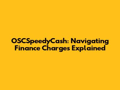 OSCSpeedyCash: Navigating Finance Charges Explained
