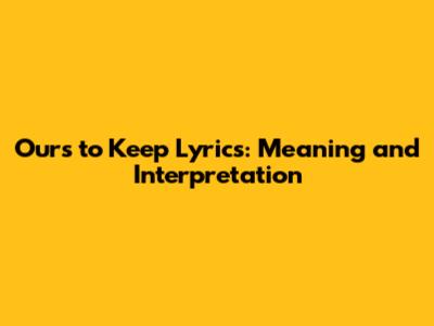 Ours To Keep Lyrics: Meaning And Interpretation