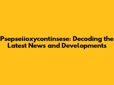 Psepseiioxycontinsese: Breaking News And Updates