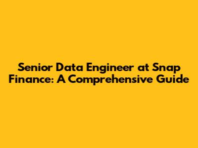 Senior Data Engineer At Snap Finance: A Comprehensive Guide