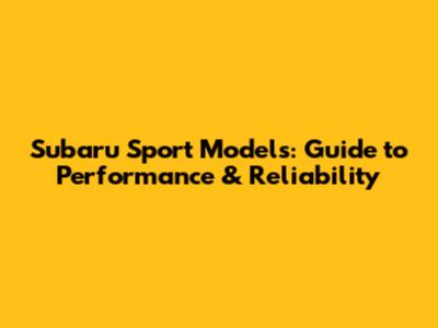 Subaru Sport Models: Guide To Performance & Reliability