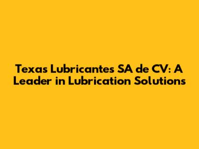 Texas Lubricantes SA De CV: A Leader In Lubrication Solutions